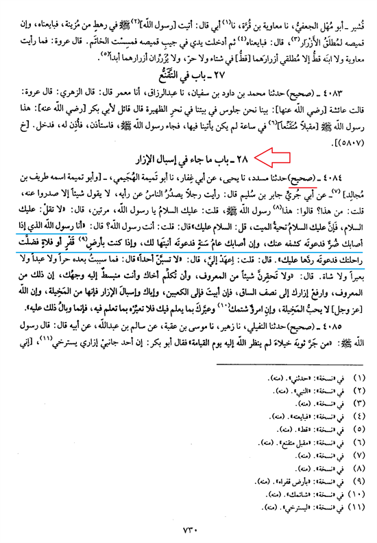 کِتَاب اللِّبَاسِ بَاب مَا جَاءَ فِی إِسْبَالِ الْإِزَارِ