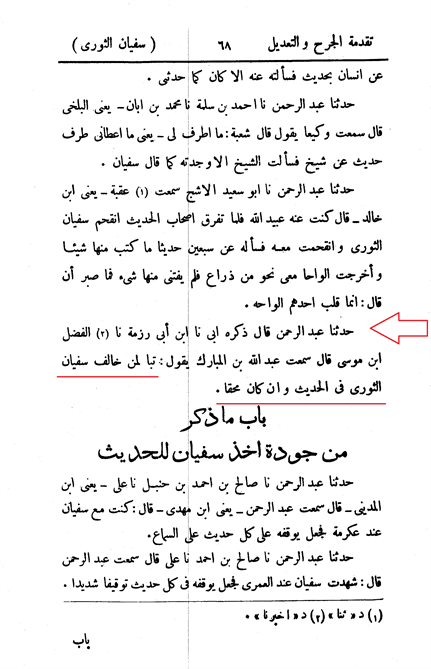 الله بن المبارک یقول: تبا لمن خالف سفیان الثوری فی الحدیث وان کان محقا.