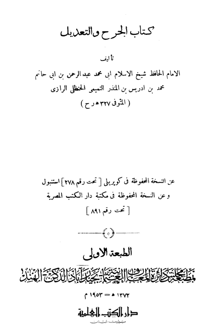باطل} الجرح والتعدیل عبد الرحمن بن أبی حاتم محمد بن إدریس بن المنذر التمیمی الحنظلی الرازی ج1ص68 دارالکتب العلمیه