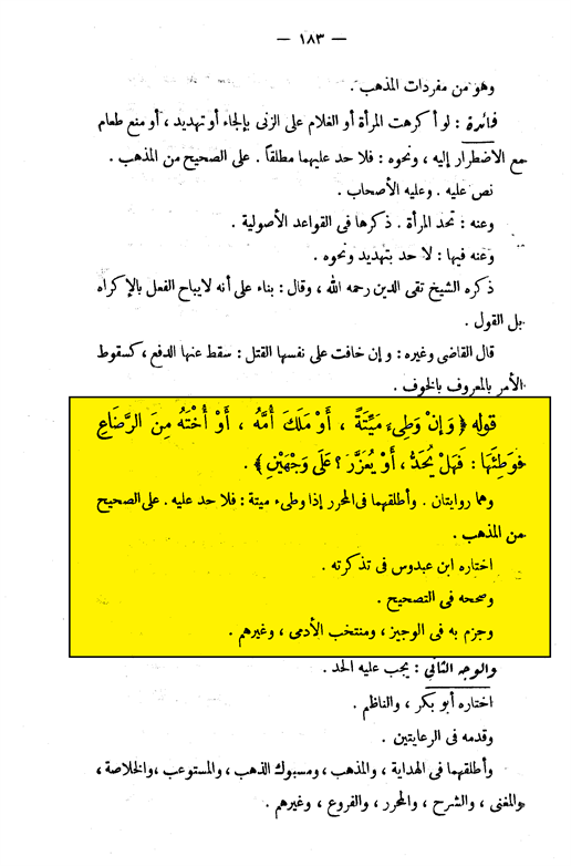 الإنصاف فی معرفة الراجح من الخلاف على مذهب الإمام أحمد بن حنبل ، ج 10 ص 183، اسم المؤلف: علی بن سلیمان المرداوی