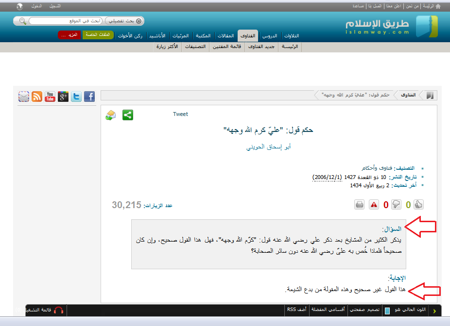 از ابواسحاق الحوینی شیخ نواصب سوال شده:بسیاری